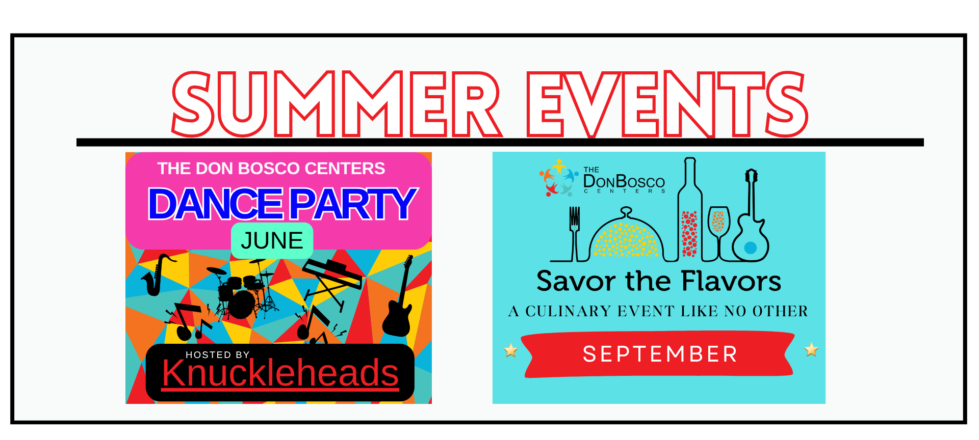 Two summer favorites you won’t want to miss! Knucklehead’s Dance Party and Savor the Flavors bring together fun, food, and community — all in support of the Don Bosco Centers. Stay tuned for more details as we get closer to each event.